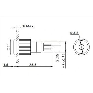 Индикатор металл Ø8 12В подсв/желтая LED предназначен для индикации состояния электрических цепей. Такие индикаторы устанавливаются на лицевых панелях управления электрооборудованием (в объектах энергоснабжения, измерительных приборах, блоках питания, легковых и грузовых автомобилях, и других местах) с рабочим напряжением не более 12В. Разнообразные цветовые варианты исполнения позволяют эффективно комплектовать панели управления. Изделие состоит из двух основных частей - лицевой части (головки) и контактной. Монтаж осуществляется без применения винтов на плоских панелях толщиной от 0.5мм до 5мм, с помощью гайки. Подключение контактов осуществляется с помощью пайки.
