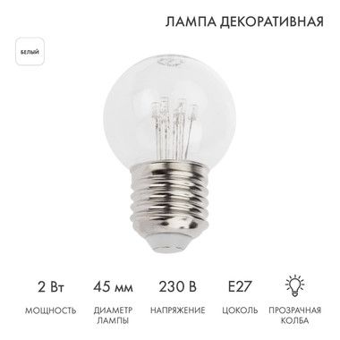 Диаметр колбы составляет 45 мм, что увеличивает площадь свечения и насыщенность светом окружающего пространства.