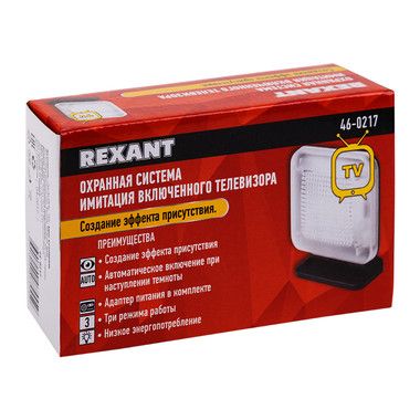 Имитатор включенного телевизора GS-217, создает «эффект присутствия» хозяев дома. Встроенный датчик освещенности автоматически включит устройство при наступлении темноты и выключит его при наступлении рассвета или через 2 или 9 часов (выбирается переключателем).
