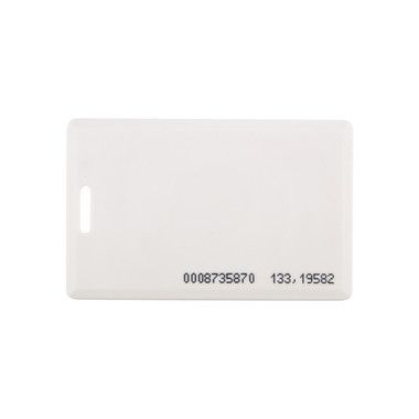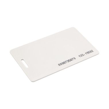 Ключ электронный 125KHz формат EM Marin имеет размеры обычной кредитной карты.Бесконтактные карты используются в системах контроля доступа для идентификации личности. В карту занесен код. При поднесении к бесконтактному считывателю код с карты считывается и передается в контроллер. Преимуществом электронных пропусков является возможность использовать их не только в качестве бесконтактной идентификации личности, ключа для доступа в помещение, но и для организации контроля трудовой дисциплины и учета рабочего времени.