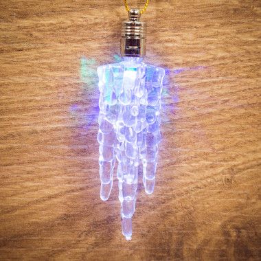 Светодиодная подвесная фигурка «Сосулька» 10×3 см — эффектное интерьерное украшение, выполненное из прозрачного пластика. В центре находится яркий светодиод RGB, непрерывно меняющий цвет свечения. Гамма состоит из 256 разных оттенков. В верхней части расположен батарейный блок, защищенный металлической гильзой. Три элемента питания типа LR41 входят в комплект. Фигурка подвешивается при помощи тонкого шнурка. Светодиодный декор поможет красиво оформить новогоднюю ель и другие предметы обстановки.