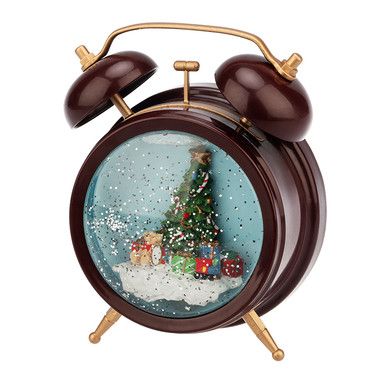 Декоративный светильник «Часы» выполнен в виде классического будильника, у которого вместо циферблата установлена прозрачная колба со специальной жидкостью. Внутри находится яркая композиция из новогодней елки, окруженной подарками. 2 диода, излучающих теплый белый свет, создают эффектную подсветку, которая может использоваться во время ночного сна. Золотистое конфетти имитирует зимний снегопад и заставляет подолгу наблюдать за причудливым танцем сверкающих частиц. Светильник питается от 3 батареек типа АА, что гарантирует полную безопасность использования. В комплекте идет USB-кабель.