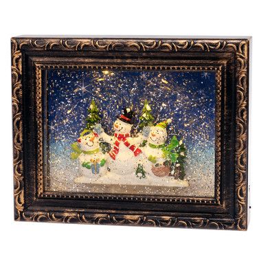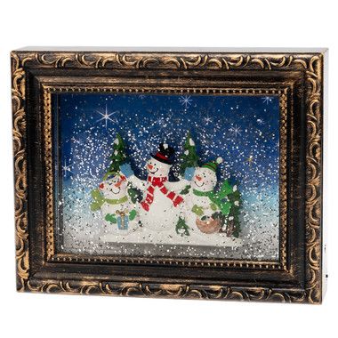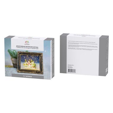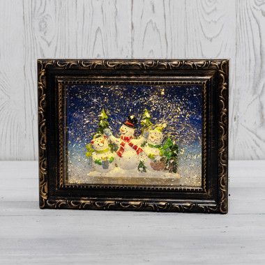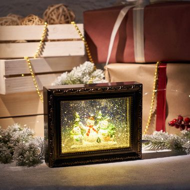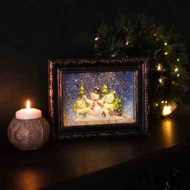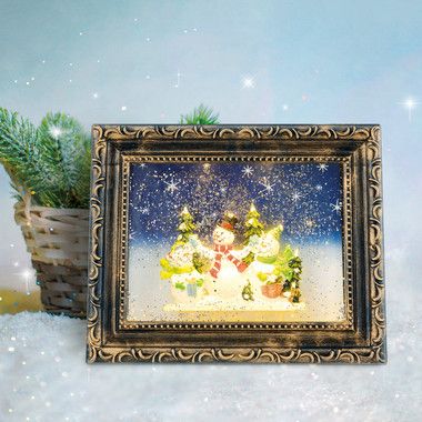 Декоративный светильник «Картина» с эффектом снегопада и подсветкой — прекрасный подарок к Новому году или Рождеству, который порадует и детей, и взрослых. Прозрачная колба наполнена жидкостью с металлизированным конфетти, которая начинает циркулировать сразу после включения. Сверкающий вихрь блесток уносит зрителей в волшебную зимнюю сказку, где главные герои — компания снеговиков — фигурки, стоящие в центре. Светильник работает от 4-х элементов питания типа АА, что дает возможность использования в любом удобном месте. USB-шнур входит в комплект.