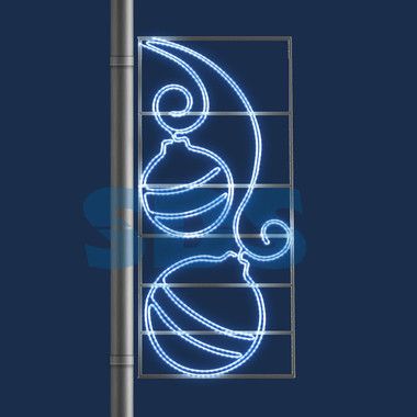 Выносные консоли для опор освещения - украшают фонари вдоль улиц и проспектов, освещают пешеходные дорожки в парках и скверах, подсвечивают фасады и окна зданий. Выполнены из прочного и лёгкого алюминиевого каркаса хорошо отражающего иллюминацию изделие не ржавеет, не требует покраски. Светотехника профессиональной серии из резинового провода ярко светит при любых погодных условиях, потребляет мало энергии. служит много лет. Конструкция создаст атмосферу рождественского праздника в вечернем городе.