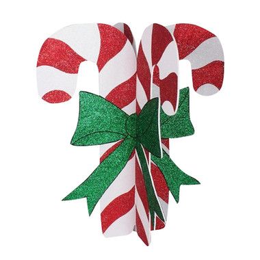 Елочная фигура "Карамельная палочка", 89*78 см, цвет белый с красными полосками, каждая плоскость фигуры украшена бантом зеленого цвета
