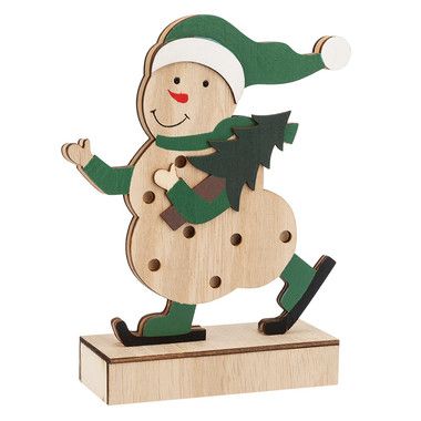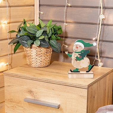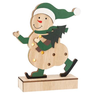 Деревянная фигурка с подсветкой «Снеговик» высотой 18 см выполнена в виде забавного персонажа — одного из главных символов Нового года. Улыбающийся снеговик, застывший в дружелюбном жесте, держит в руках елку. Композиция вызывает ассоциацию с доброй волшебной сказкой и создает радостное настроение окружающим. В качестве элементов питания используются 2 батарейки типа ААА. 5 экономичных диодов излучают теплый белый свет и мягко обрамляют яркую композицию. Изделие произведено из экологичных материалов, не вызывающих аллергию.