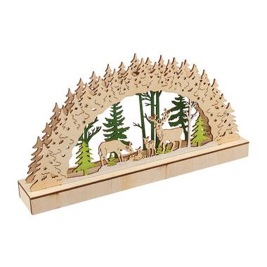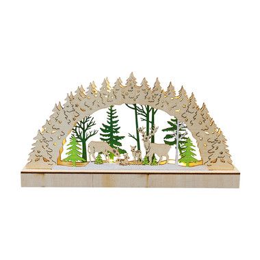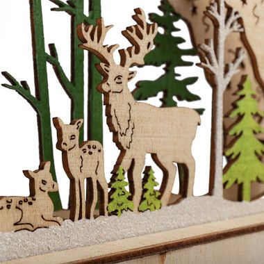 Деревянная фигурка с подсветкой «Семейство оленей» 30×5×15,7 см станет великолепным украшением интерьера, внесет нотку тепла и подарит ощущение зимней сказки окружающим. Композиция из фигур деревьев, оленей размещена на устойчивой платформе, которую можно поставить на любую ровную поверхность. Изделие выполнено из натуральной древесины. 6 безопасных светодиодов получают питание от 2 батареек типа ААА и экономно расходуют энергию, превращая ее в яркий белый свет теплого оттенка. Деревянная фигурка «Семейство оленей» предназначена для использования в сухих отапливаемых помещениях.