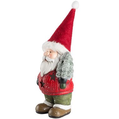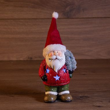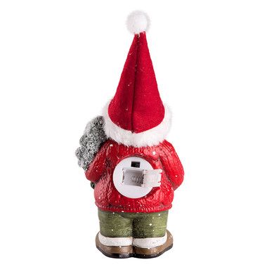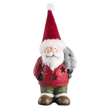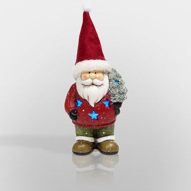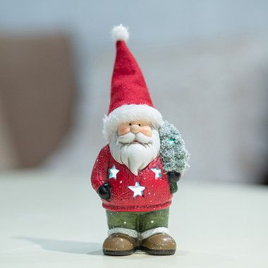 Керамическая фигурка «Дед Мороз с елкой» 9×6×14 см — интересное украшение для интерьера, помогающее создать ощущение зимней сказки, в которую с радостью окунутся и дети, и взрослые. Добрый персонаж в красном колпаке держит в руке новогоднюю ель и приветливо улыбается окружающим. За декоративную подсветку отвечает 1 экономичный диод, излучающий белый яркий свет, который проникает наружу через резные звездочки. Изделие работает от двух батареек типа LR44. Элементы питания входят в комплект.