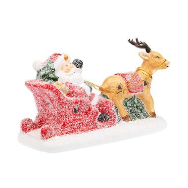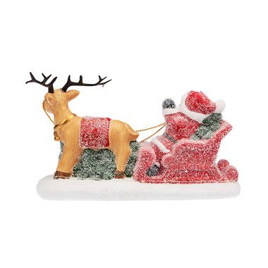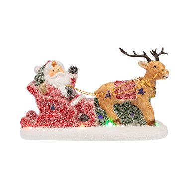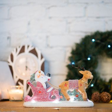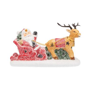Керамическая фигурка «Дед Мороз в санях» 30.5×12.2×17.2 см — интерьерное украшение, которое можно разместить в любом уголке вашего дома, поскольку изделие не требует подключения к электрической розетке. 2 батарейки типа ААА устанавливаются в специальный блок в задней части конструкции. Кнопка ON/OFF позволяет быстро включать и выключать подсветку. Керамика — это безопасный, качественный материал, любимый многими за аутентичность. Фигурка покрыта нетоксичной краской, поверхность имеет приятную фактуру, имитирующую легкий иней на теплой шубке Деда Мороза.