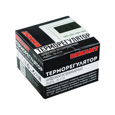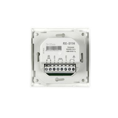 Электронный термостат RX-511H встраиваемый, корпус белый, диапазон регулировок + 5°C/+40°C, коммутируемый ток контактов 16 А (3500 Вт), внешний датчик температуры 10 кОм.