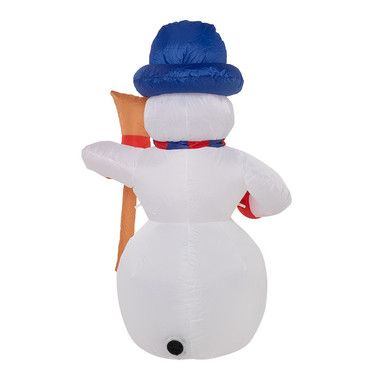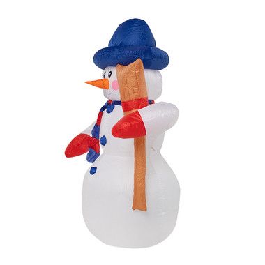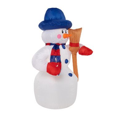 Надувная 3D-фигура «Снеговик с метлой» высотой 120 см встретит ваших гостей на уличной площадке, в холле коттеджа или прихожей и станет главным хозяином веселого праздника. Добрый улыбающийся персонаж выполнен из прочного синтетического материала — капрона. За поддержание постоянного объема воздуха во внутренней полости отвечает мощный компрессор, идущий в комплекте. Чтобы фигуру, установленную на улице, не унесло ветром, предусмотрен надежный крепеж. Три диода обеспечивают яркую подсветку, создающую эффект объемного контура. Изделие защищено от влаги и пыли по стандарту IP65.