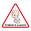 Наклейка автомобильная «Ребенок в машине» информативного характера клеится на заднее стекло автомобиля (с наружной стороны). Информирует участников движения о том, что в салоне автомобиля находится несовершеннолетний ребенок и призывает к особой внимательности на дороге, а также сообщает данную информацию службам спасения в экстренных ситуациях.