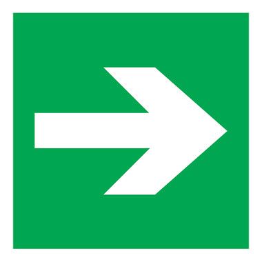 Знак безопасности (наклейка) указатель направление движения "Направляющая стрелка", как правило, размещается на стенах и ограждениях. Знак используется самостоятельно или в составе комбинированных знаков безопасности для указания направления движения к выходу/входу. Такие наклейки предназначены для своевременного информирования окружающих о путях выхода/входа, о путях экстренной эвакуации при возникновении чрезвычайных ситуаций. Они обязательны к размещению на предприятиях, в учреждениях, общественных зданиях и сооружениях.