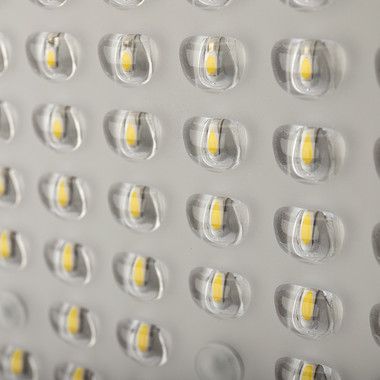 Множество долговечных светодиодов со световым потоком 15000 Лм и мягким белым свечением создают эффект дневного освещения. Прочный рассеиватель из поликарбоната со встроенной оптикой используется в качестве рассеивателя.
