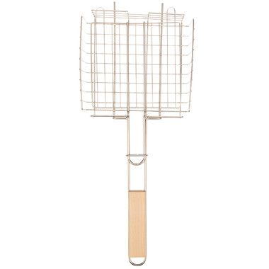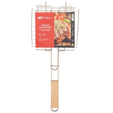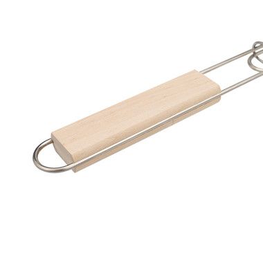 Ручка выполнена из натурального дерева. Она удобно лежит в руке и меньше нагревается, что позволяет легко переворачивать при приготовлении решетку для барбекю, не боясь обжечься.