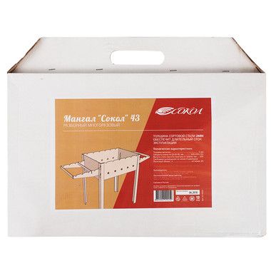Компактный разборный мангал СОКОЛ изготовлен из стали увеличенной толщины, поэтому не подвергается тепловым деформациям от углей и дров. Предназначен для многоразового использования. Сборка и установка мангала производится вручную без использования специальных инструментов. На стенках жаровни предусмотрены специальные прорези, которые позволяют разместить до 6 шампуров. Дополнительные держатели обеспечивают место для установки еще 8 шампуров. Есть отверстия для интенсивного горения. Общая высота ножек 50,5 см оптимальна и удобна для приготовления шашлыков. Размеры жаровни 91х29,5х15,5 см позволяют разместить шампуры и получить порцию блюда, рассчитанную на небольшую компанию. В разобранном виде мангал не занимает много места, легко помещается в багажник автомобиля.