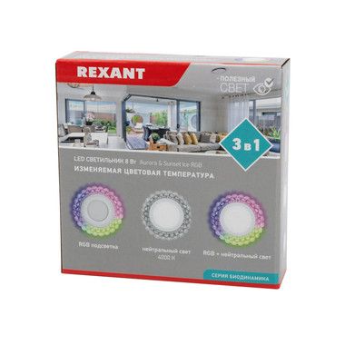 Светодиодный встраиваемый светильник REXANT Aurora&Sunset Ice RGB с двумя независимыми контурами 4000 К 4W+RGB LED предназначен для установки в жилых помещениях. Он отлично украсит интерьер кухни, зала или прихожей.