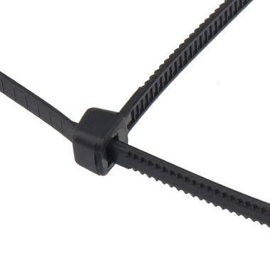 Представляет собой гибкую полоску из нейлона высокой прочности (полиамид-6,6) с двусторонним полотном с зубчиками и новым замком с тремя точками контакта на конце. Благодаря новой конструкции имеет прочность минимум на 30 % больше по сравнению с аналогами. Полиамид-6,6 — кристаллизующийся конструкционный материал, имеющий высокую твердость и механическую прочность, отличающийся высокими электроизоляционными свойствами.