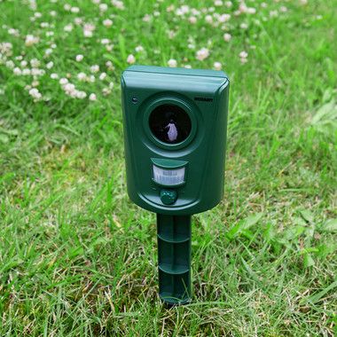 В комплекте с устройством идёт подставка для установки отпугивателя в грунт, а так же крепеж для подвешивания на стену. Для использования внутри помещений и на улице.