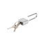 Дужка замка выполнена из закаленной стали, что делает её перекусывание достаточно сложным даже для таких инструментов, как болторезы и арматурные ножницы. Механизм замка выполнен из долговечного и надежного материала.