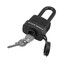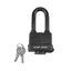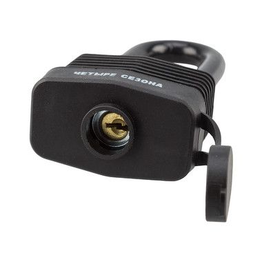 Специальная прорезиненная оболочка препятствует проникновению влаги внурь механизмов замка. Длинная дужка позволяет устанавливать замок в труднодоступных местах