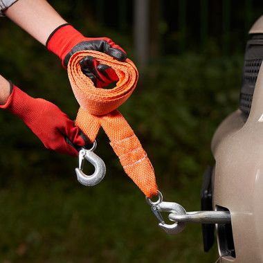 Буксировочный трос 2.5 тонны REXANT незаменим в случае поломки автомобиля.