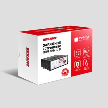 Автоматическое зарядное устройство 0.4-7А (PWS-265) REXANT со стрелочным амперметром и возможностью регулировки зарядного тока, предназначено для восстановления работоспособности автомобильной АКБ в результате ее разряда.