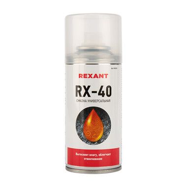 RX-40 – полный аналог WD-40. Создан для смазывания, защиты от коррозии и облегчения отвинчивания заржавевших резьбовых соединений. Эффективно смазывает трущиеся поверхности, устраняет скрипы и заедания деталей, вытесняет влагу с различных поверхностей и электрических деталей. Очищает резиновые и пластмассовые детали. Растворяет различные нерастворимые в воде технические загрязнения, очищает следы от ржавчины и коррозии. Проникает в заклинившие и заржавевшие механизмы и разъединяет их.
