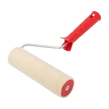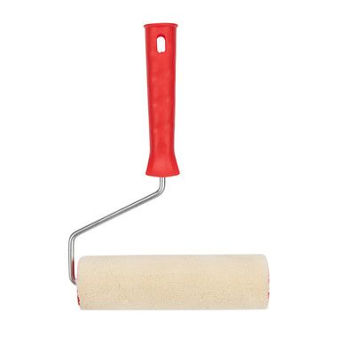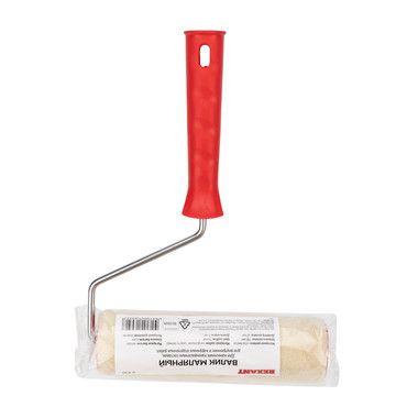 Валик состоит из пластмассового цилиндра, мягкой шубки, бугеля (изогнутого металлического стержня) и удобной пластиковой рукоятки.