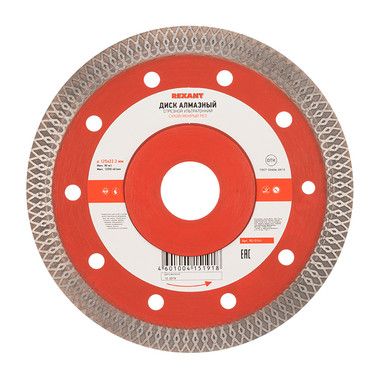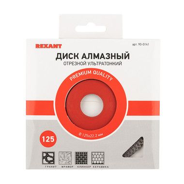 Диск алмазный отрезной ультратонкий 125x22.2 мм REXANT предназначен для сухой и мокрой резки строительных материалов, таких как гранит, керамогранит, песчаник, клинкер, мрамор, керамика. Используется в угловой шлифовальной машине, ручном электрическом плиткорезе.