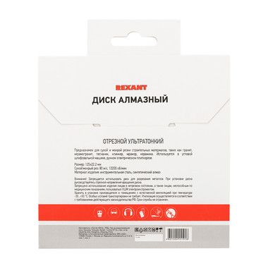 Внимание. Запрещается использовать диск для разрезания металлов. При установке диска руководствуйтесь стрелкой направления вращения диска. Используйте средства индивидуальной защиты. Не утилизировать с бытовыми отходами.