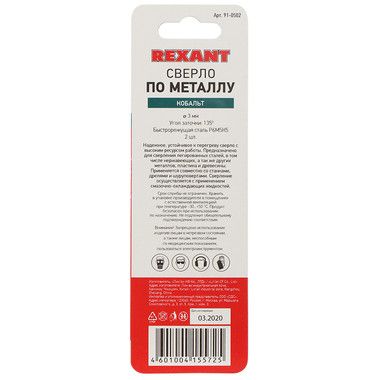 Сверло по металлу 3 мм «Кобальт» (сталь HSS-Co 5% M35) (2 шт. в блистере).