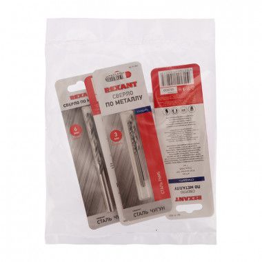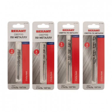 Набор сверл по металлу Слесарь Mini (P6M5) диаметр 3-4-5-6 мм (4 шт.) REXANT. Произведено по стандарту DIN338, из быстрорежущей стали М2 (аналог P6M5), твердостью 63 HRC.