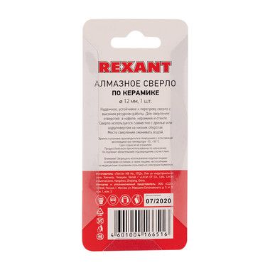 Сверло алмазное REXANT 12 мм для керамогранита. Трубчатые сверла выполнены в виде полого цилиндра. Используется совместно с дрелью или шуруповертом. Режущая кромка покрыта промышленными алмазами высокой твердости, обеспечивающими высокий ресурс сверла. Алмазные сверла требуют постоянного охлаждения водой в процессе сверления, чтобы не допустить перегрева, который негативно действует на алмазы. При перегреве алмазы легко отделяются от основы, поэтому сверлить необходимо на малых оборотах.