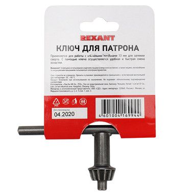 Ключ для сверлильного патрона 13 мм REXANT применяется для работы с ключевыми патронами до 13 мм для затяжки сверла. С помощью ключа осуществляется удобная и быстрая смена оснастки.
