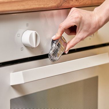 Устройство блокирует открытие двери печи ребенком и предотвращает получение травм от высокой температуры.