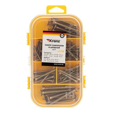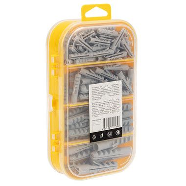 Набор саморезов и распорных дюбелей разных размеров для крепления ко всем видам полнотелых оснований: кирпич, бетон и т.д.