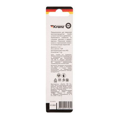 Сверло KRANZ соответствует стандартам профессиональной оснастки. Предназначено для сверления отверстий в мягких и средних по твердости металлах, пластике и различных породах дерева при помощи дрели или станка с цилиндрическим креплением, которое используется в большинстве электроинструментов бытового и профессионального назначения. Изделие выполнено из качественной инструментальной стали, что обеспечивает долгий ресурс работы и высокую производительность. Конструкция со стабилизирующей спиралью сохраняет точное положение оснастки во время сверления, что гарантирует ровные и аккуратные отверстия без трещин и сколов. Заточка режущей части под углом 118 градусов способствует эффективному входу в материал, что увеличивает цикл службы оснастки и уменьшает износ бура. Диаметр хвостовика соответствует диаметру сверления.