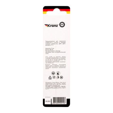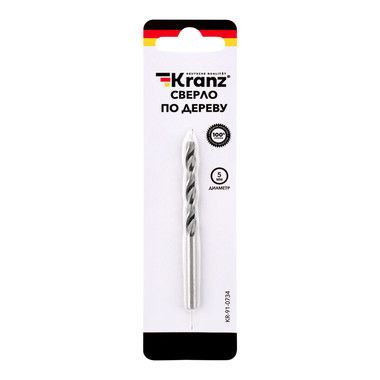 Сверло KRANZ предназначено для сверления отверстий в мягких и твердых породах древесины, ДВП, ДСП, фанеры и т. п.