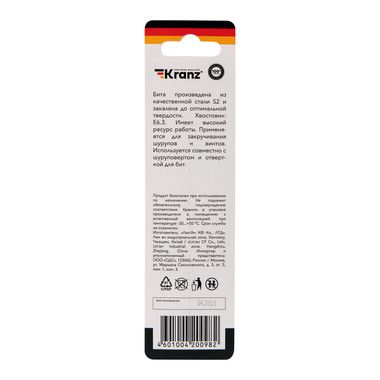 Бита для шуруповерта KRANZ PH2х127 мм предназначена для закручивания различных видов крепежа: шурупы, винты и т. д.