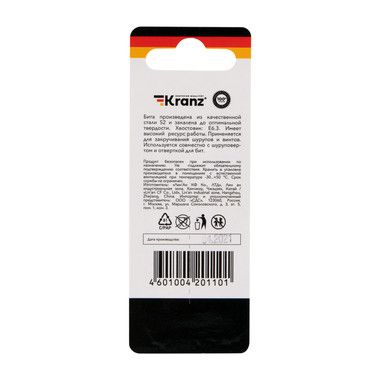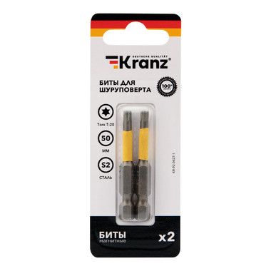 Бита для шуруповерта KRANZ T20х50 мм предназначена для закручивания различных видов крепежа: шурупы, винты и т. д.