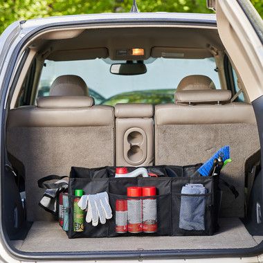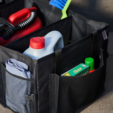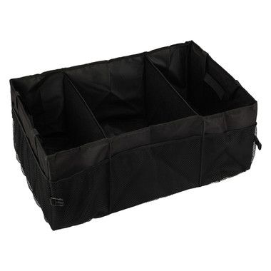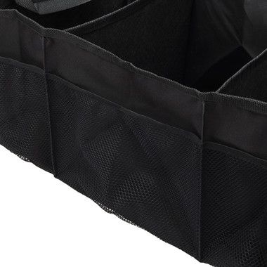 Универсальный органайзер в багажник автомобиля размером 60х39х26 см и объемом 65 л. Предназначен для обеспечения порядка в багажнике автомобиля. Для предотвращения скольжения по багажнику на дне органайзера предусмотрены липучки. Органайзер оснащен тремя раздельными карманами внутри изделия. На внешней части изделия также расположено 9 карманов для хранения необходимых мелочей. Для удобства хранения органайзера в сложенном виде предусмотрены пластиковые зажимы.