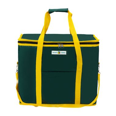 Термосумка представляет собой дорожный аксессуар, который позволяет сохранять температуру продуктов в течение длительного времени. С внешней стороны сумка покрыта прочной и влагостойкой тканью, а с внутренней – фольгированным материалом, обладающим высокими теплоизоляционными свойствами. Имеет два слоя утепления, что увеличивает время сохранения холода/тепла внутри контейнера. Аксессуар оснащен специальным внутренним карманом для аккумулятора холода. Сумка оборудована прочным ремнем, за счет чего ее комфортно и удобно носить плече и в руках. Термосумка не имеет жесткого каркаса, благодаря чему после использования легко скручивается и не занимает много места. Объем холодильного отсека 40 литров.
